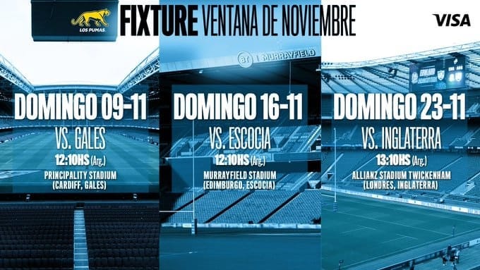 Para finalizar el año, Los Pumas se medirán nuevamente con equipos del hemisferio norte en la tradicional ventana de noviembre. El seleccionado visitará a Gales el 9 de noviembre en Cardiff, a Escocia el 16 en Murrayfield, y a Inglaterra el 23 en Twickenham, en tres duelos que pondrán a prueba el nivel del equipo en territorio europeo.