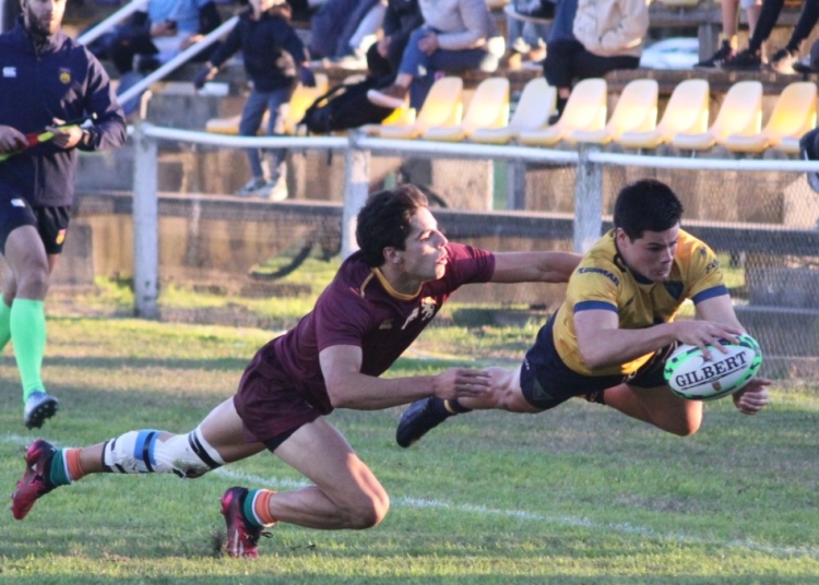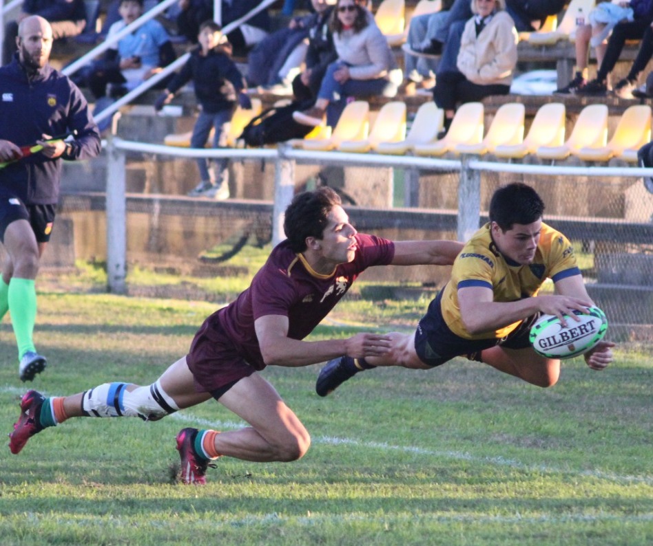 Desde el inicio La Plata tuvo un partido cuesta arriba ya que debió contener el juego del Bordó, que con mucho ímpetu, atacó desde varias posiciones el ingoal canario. Tan es así que a los 8’ Ulloa, logró quebrar y apoyó el primer try para los de Benavídez, para el 7 a 0 inicial.
